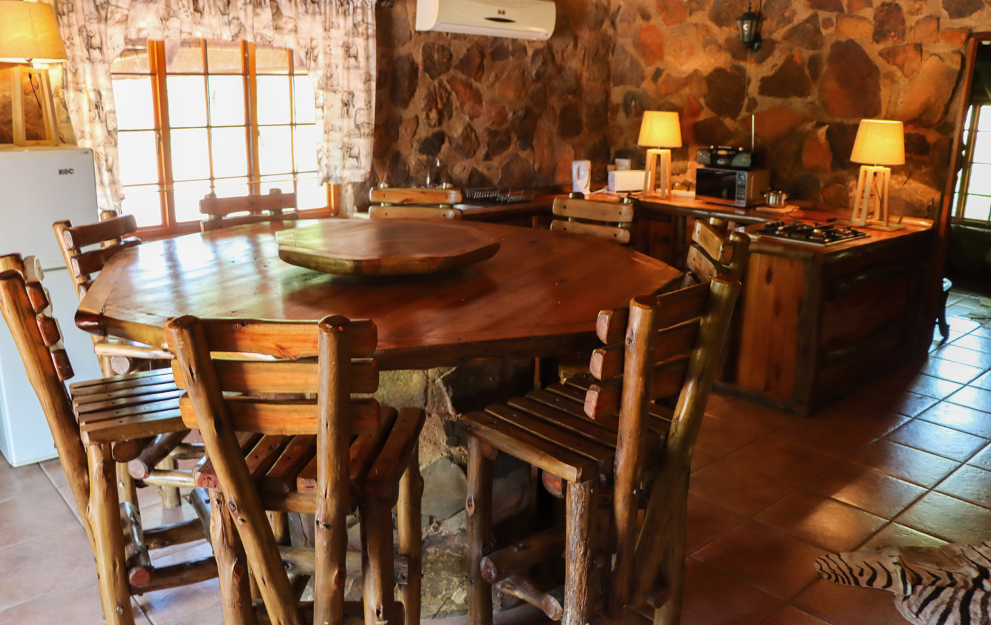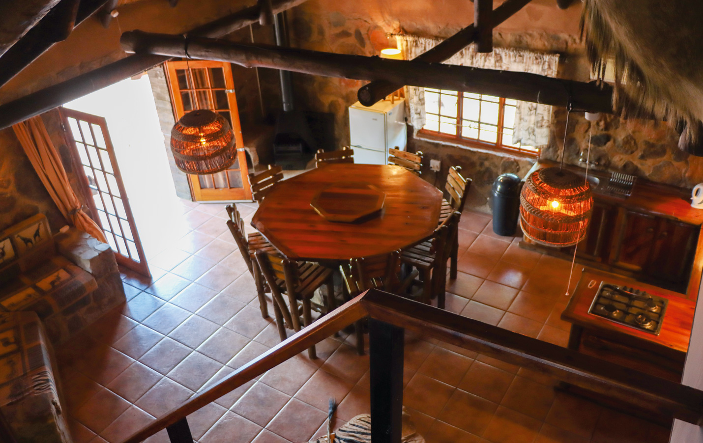 Cette habitation située en plein milieu du bush, construite avec des rochers, est composée d’une grande pièce principale avec cuisine équipée ouverte, de 3 chambres, 2 salles de bain et WC séparés. Elle offre un dépaysement total et une immersion complète dans une nature totalement préservée. Les animaux serons toujours autour pour vous surveiller !