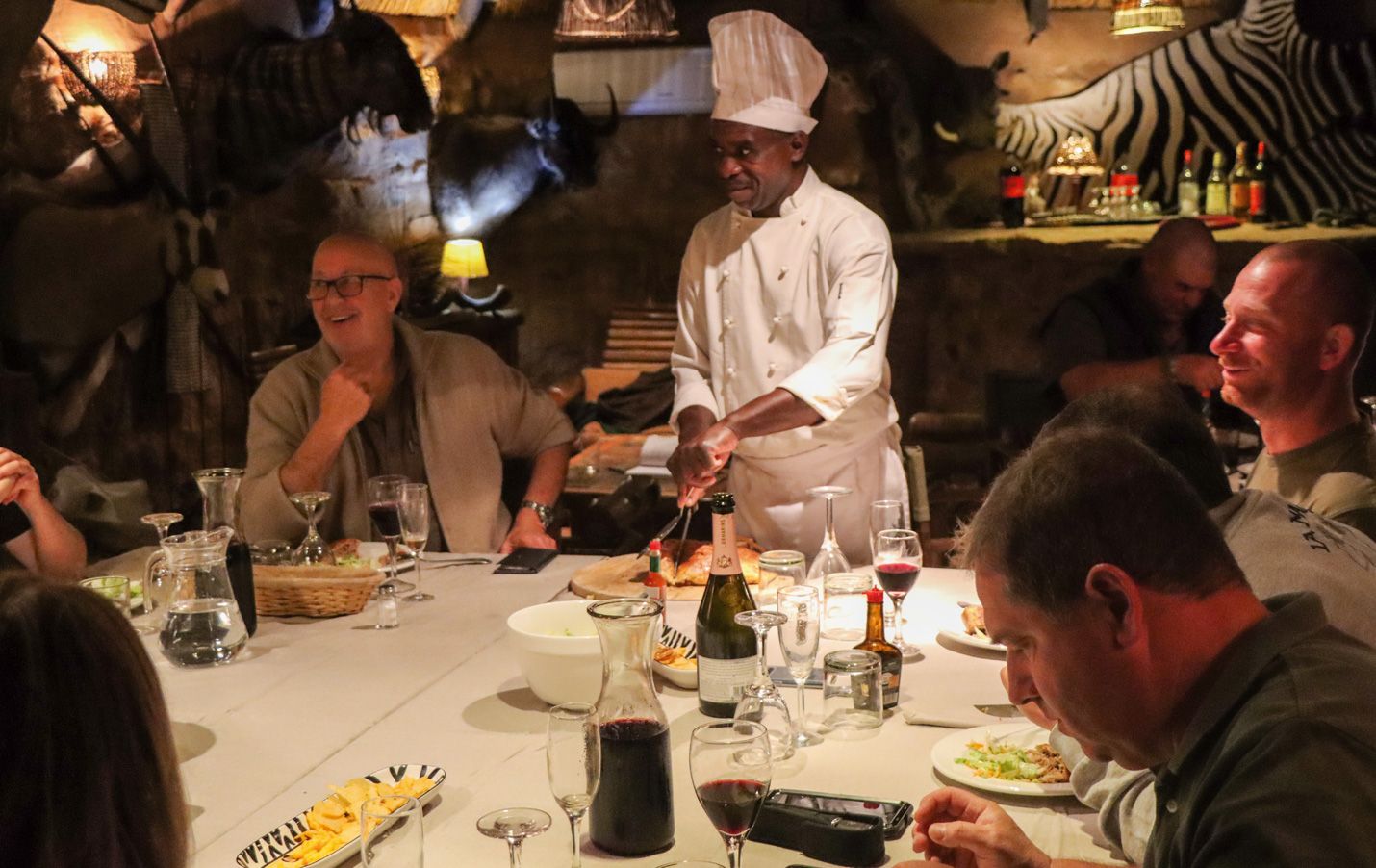 Au coeur de la réserve, dans des zones ombragées, vous pourrez vous reposer dans des lodges bien conçus. Plus comparable une chambre d’hôte qu’à un hôtel, vous profiterez des conditions très confortables pour votre séjour. Les repas préparés avec soin vous serons servis sous le lapa durant lesquels vous consommerez en partie les produits de votre chasse le tout dans une ambiance très conviviale.